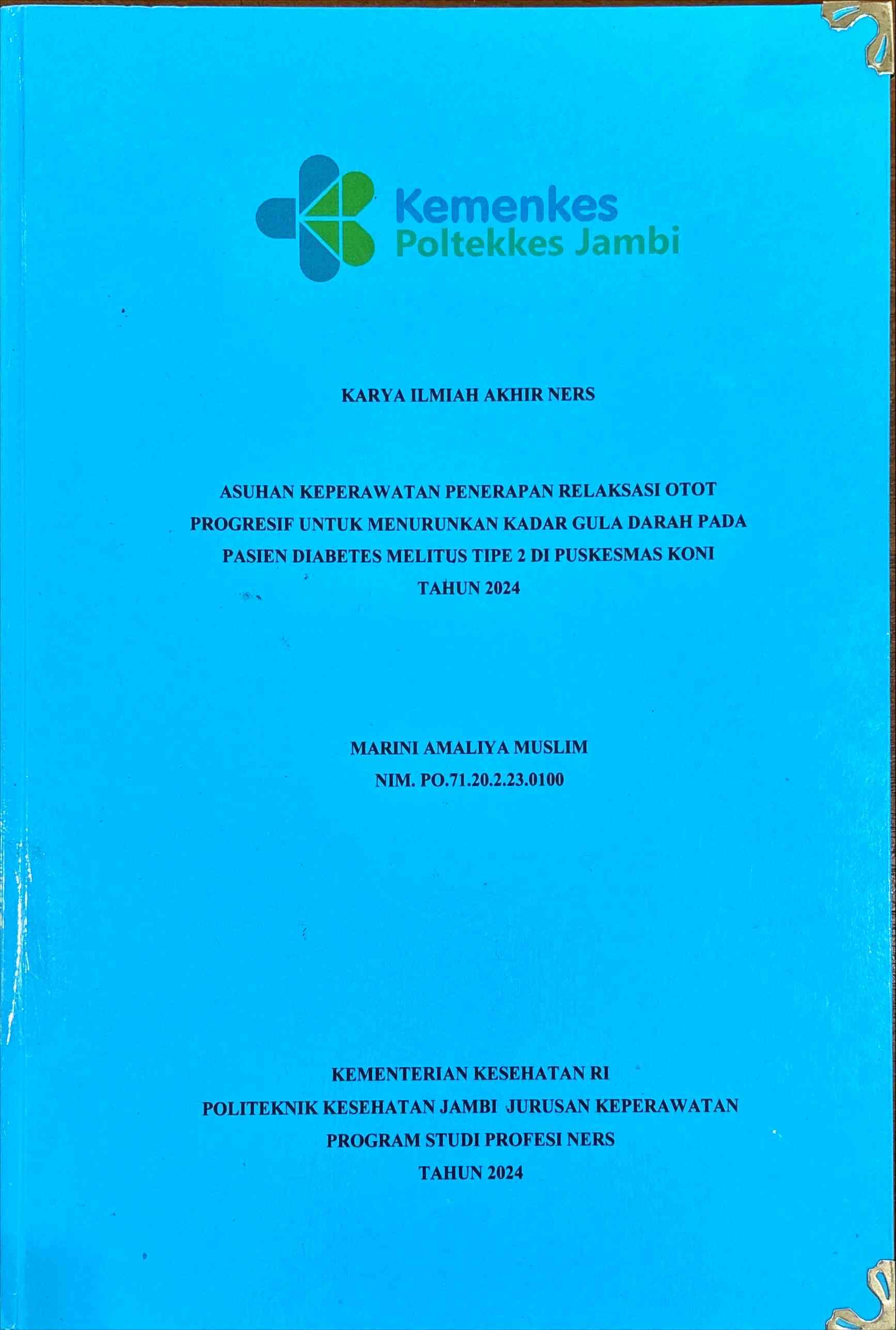 | Judul | Asuhan Keperawatan Penerapan Relaksasi Otot Progresif Untuk Menurunkan Kadar Gula Darah Pada Pasien Diabetes Melitus Tipe II Di Puskesmas Koni Tahun 2024 / Marini Amaliya Muslim |